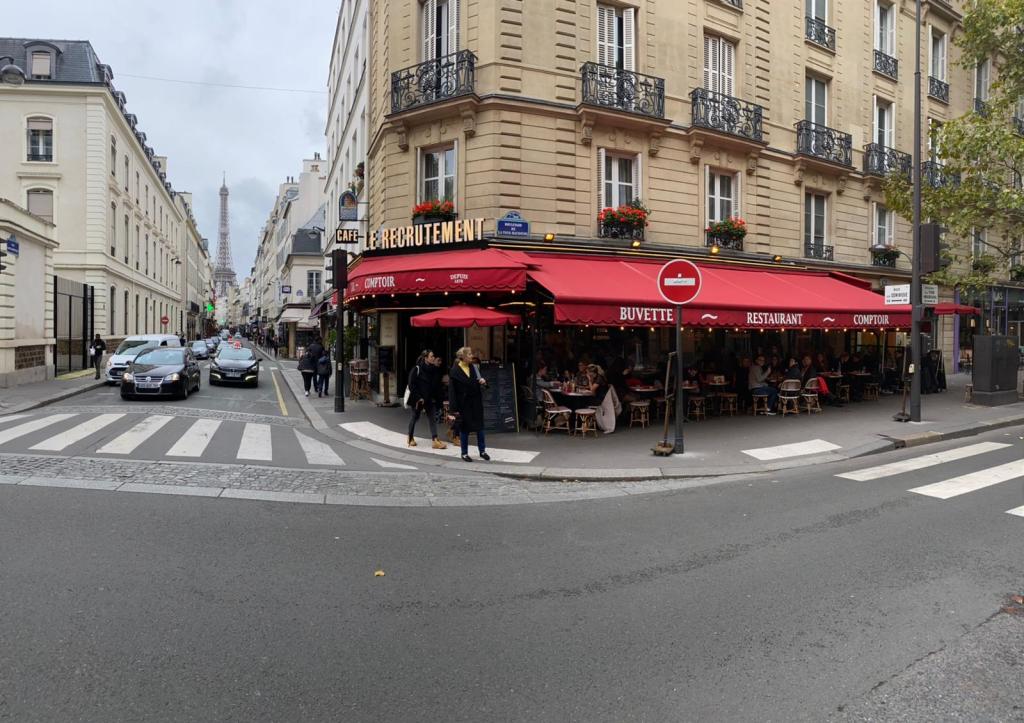 A cafĆ© where we ate a Croque Monsieur, a delicious French sandwich my mum sometimes makes for me because I love it! If you look closely at the picture, you’ll find the Eiffel tower!